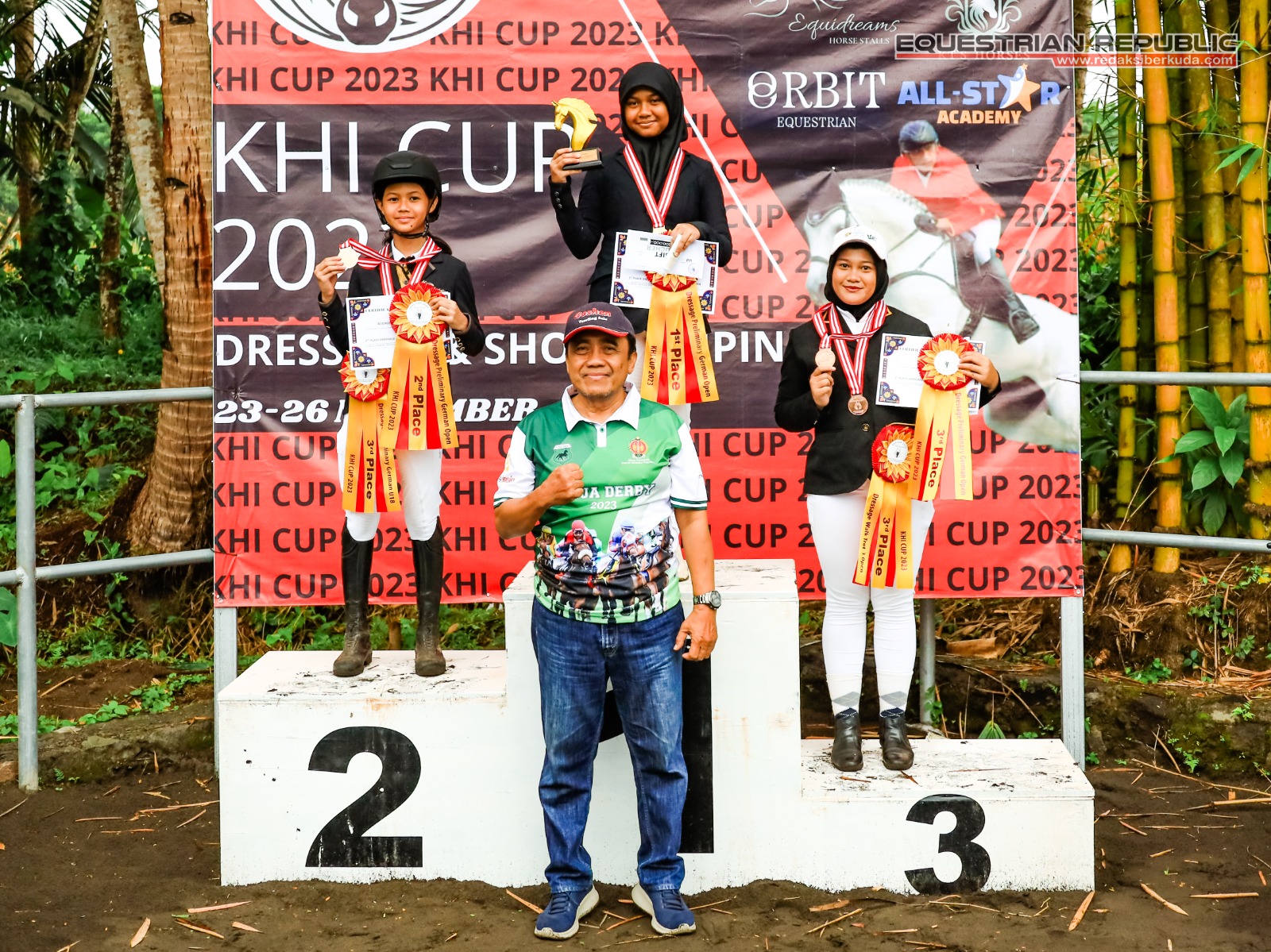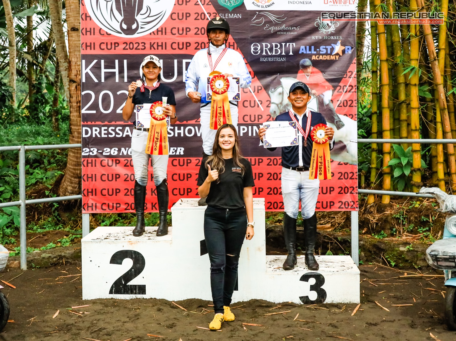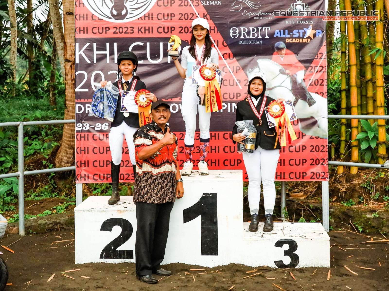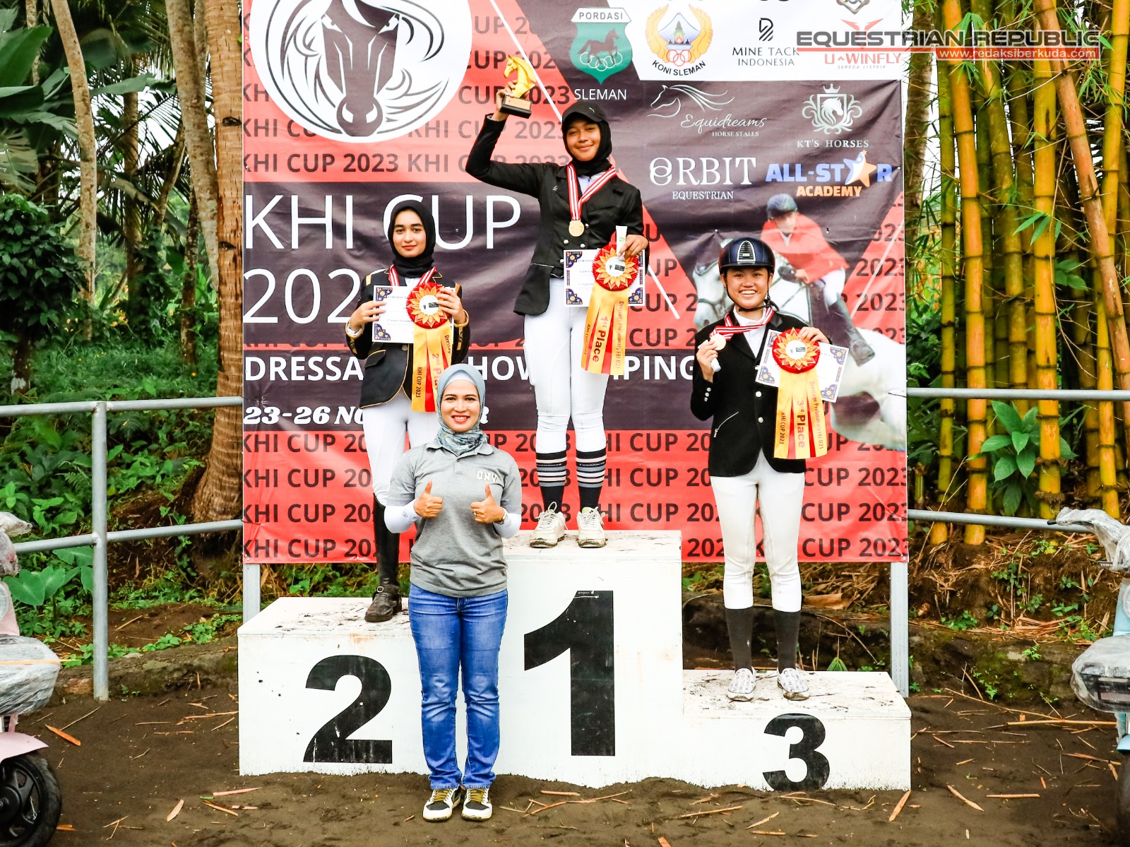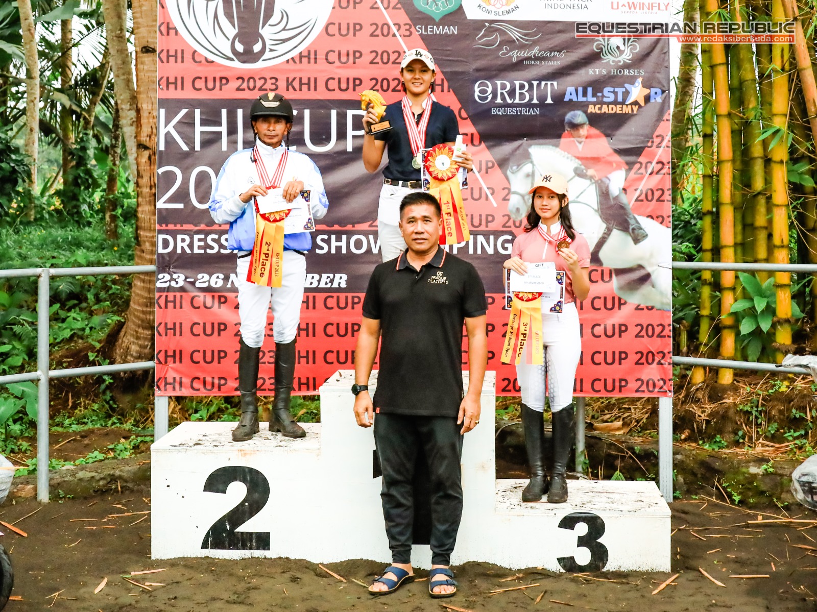 Juara 1 Indiraya Anggun Khairunisa (Mona/Solo Equestrian Centre), Juara 2 Audrielenna Sulistomo (Bulan/De Christo Klaten), dan Juara 3 Aliya R Nabila (Walangsungsang/Ciello Stable).