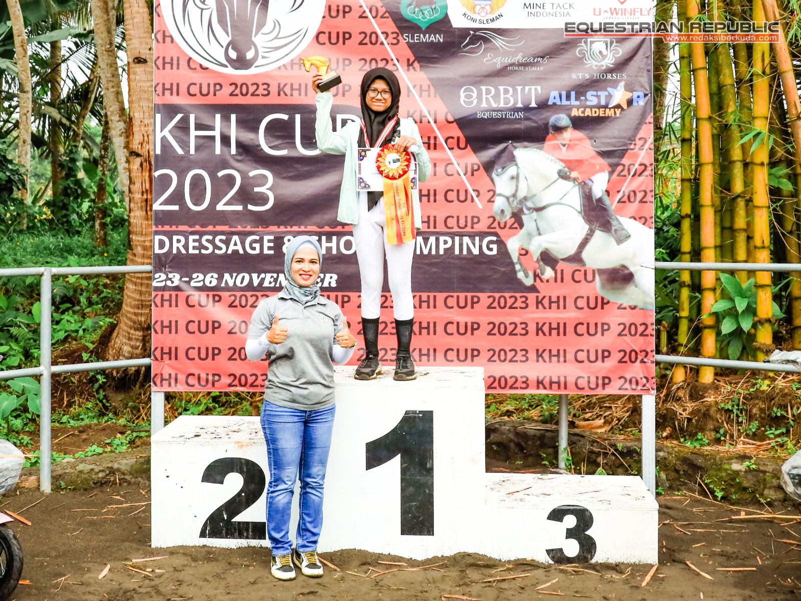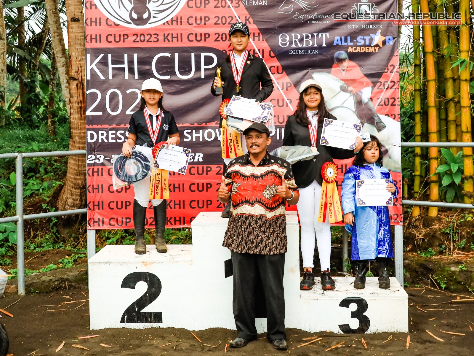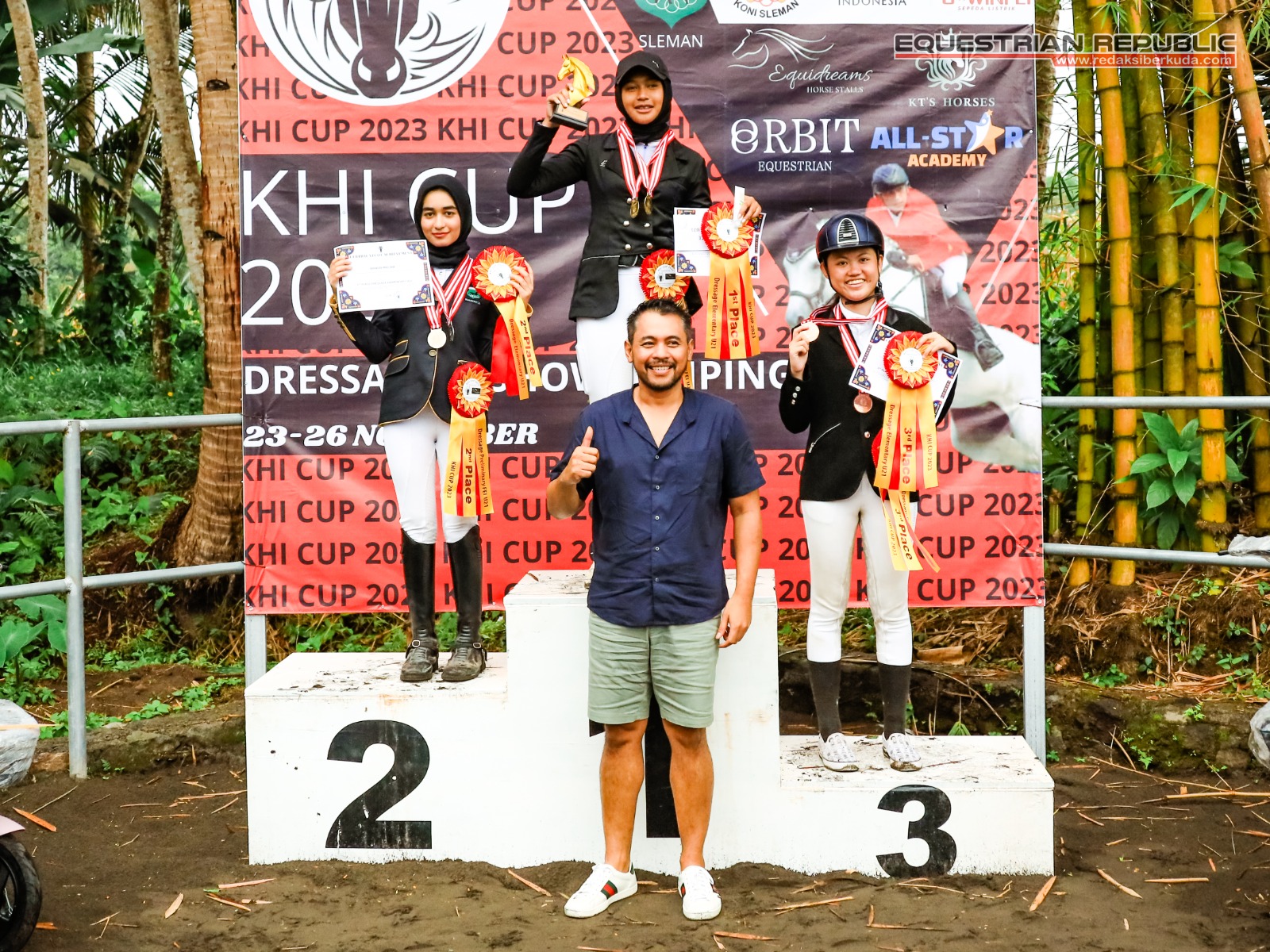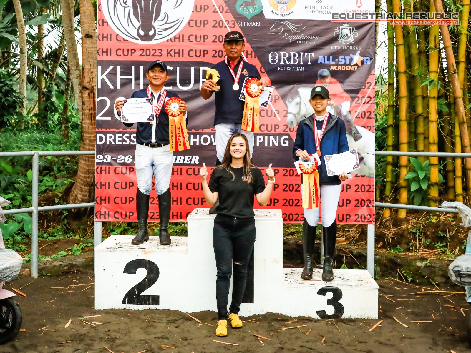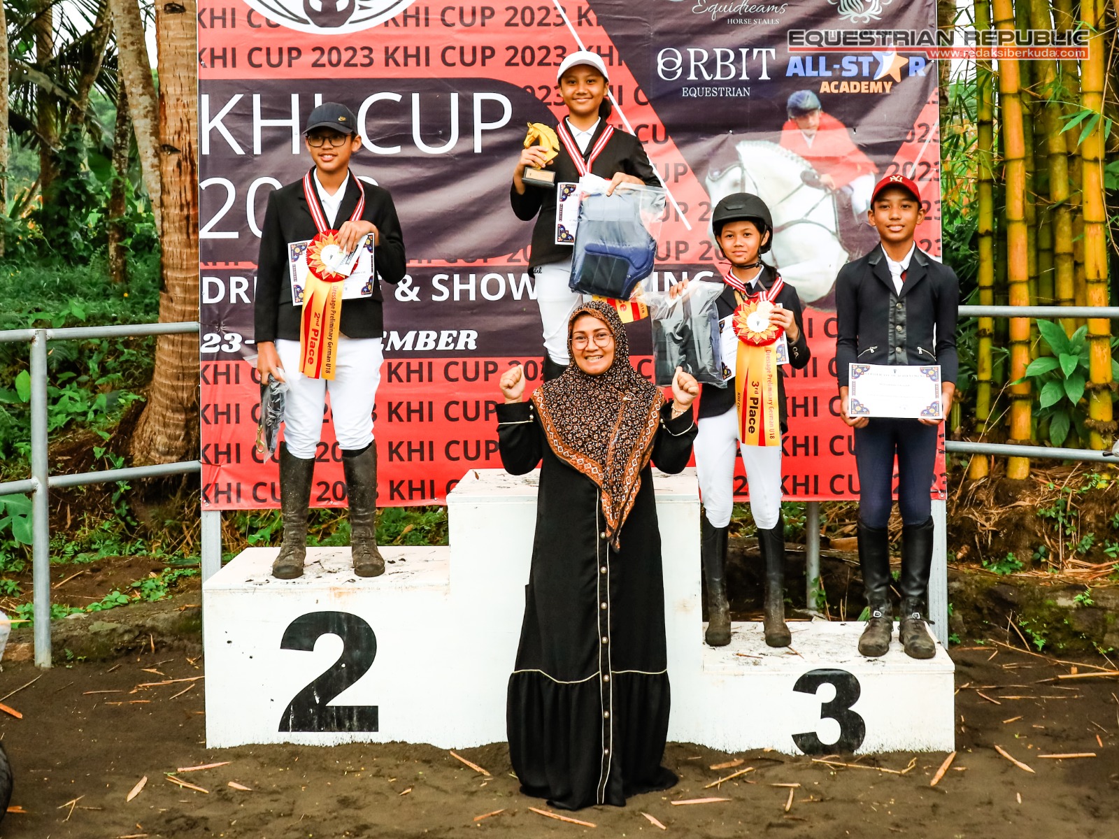 Juara 1 Indiraya Anggun Khairunisa (Mona/Solo Equestrian Centre), Juara 2 Audrielenna Sulistomo (Bulan/De Christo Klaten), dan Juara 3 Aliya R Nabila (Walangsungsang/Ciello Stable).