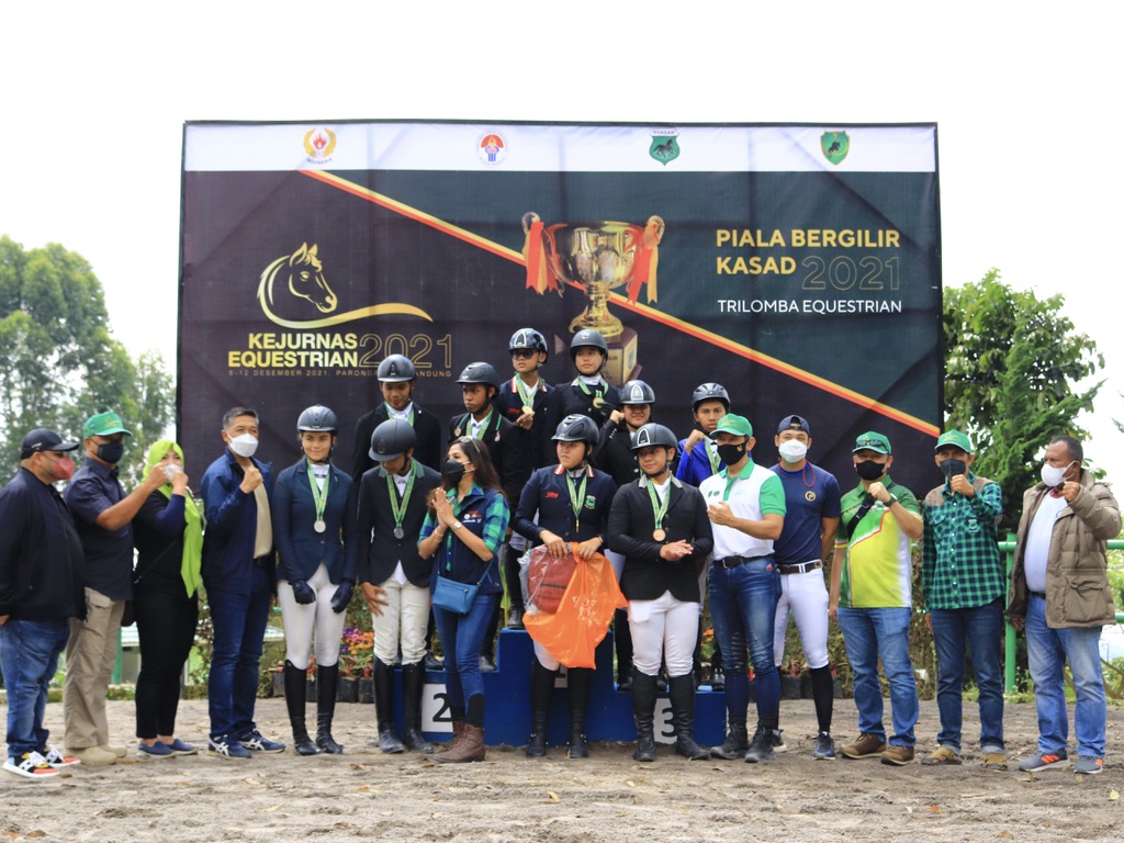 Memasuki hari ketiga (11/12) pelaksanaan Kejurnas Equestrian Piala Kasad 2021, persaingan di daftar perolehan medali semakin ketat. Setelah di hari pertama lalu Kontingen DKI Jakarta dan Jawa Barat berbagi medali emas di kelas Dressage baik untuk tim dan individual kelas U21 dan open, kali ini Kontingen Jawa Tengah tampil dominan sekaligus menyabet medali emas di Kelas Show Jumping kategori tim U21.
